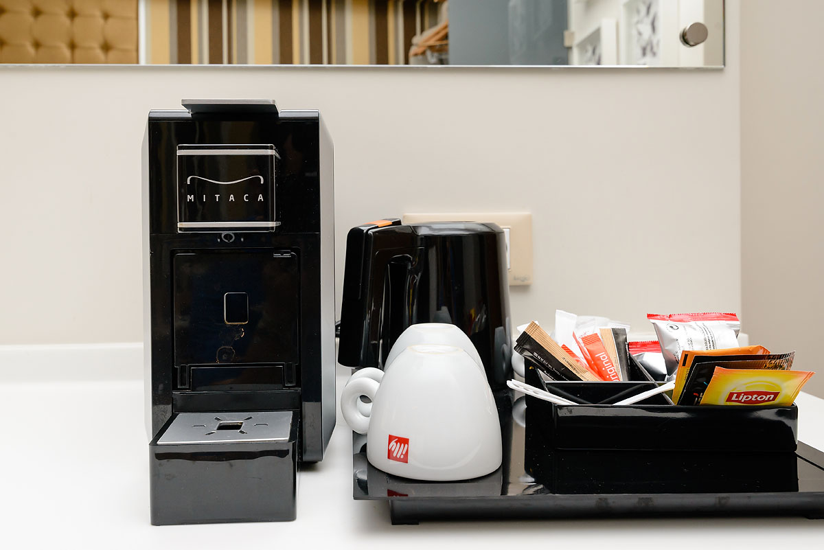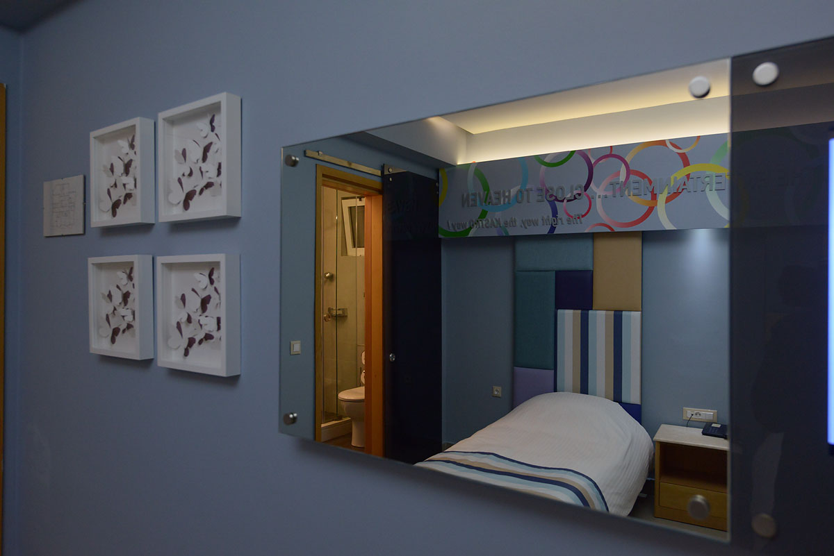 The Suite, located on the 5th floor, is uniquely & exclusively designed, offering breathtaking views over the sea and the city of Heraklion. A large picture window overlooking the sea is the perfect venue for a demanding businessman, comprising a fully equipped working desk with the free broadband high speed Internet connection as needed.
